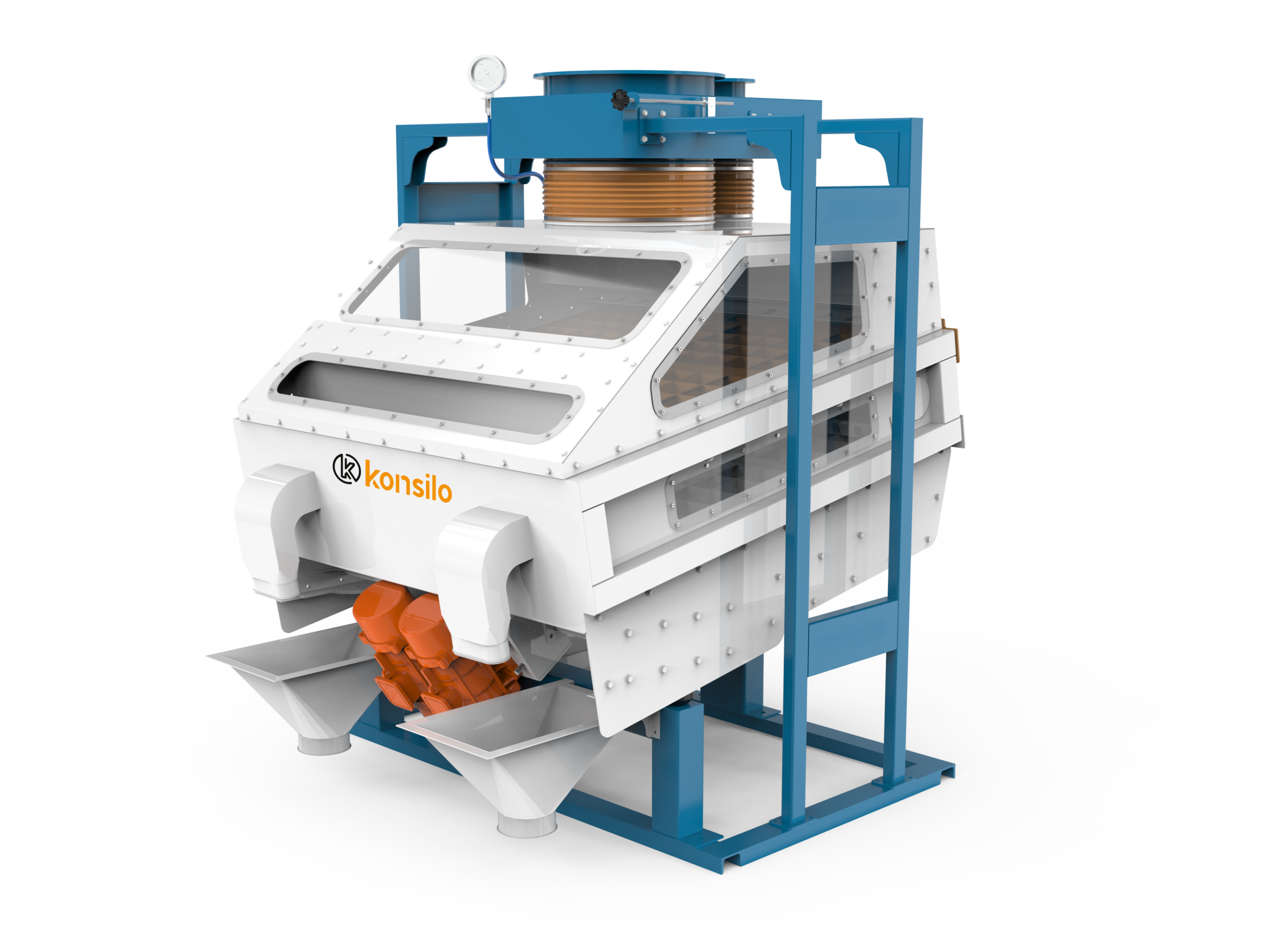 - Taş ayırıcı; titreşimli tabla + ayarlanabilir hava akımı kombinasyonu ile çalışır.